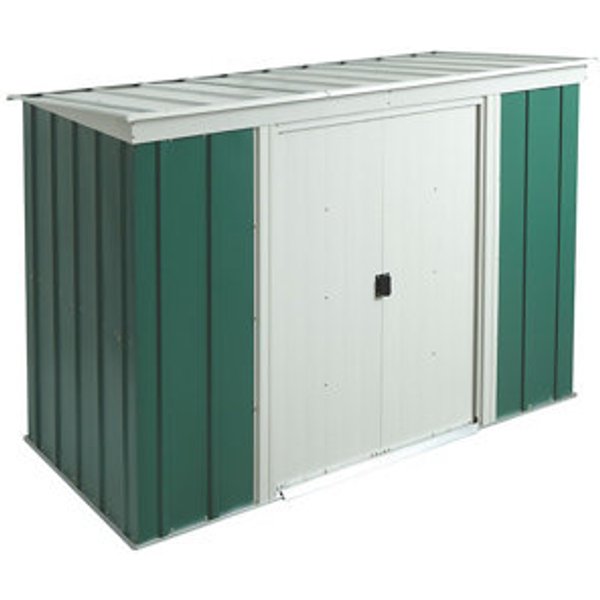 Arrow Greenvale 6×4 Pent Green & white Metal Shed.This Greenvale 6×4 pent Metal shed is ideal for securely protecting and storing garden essentials.