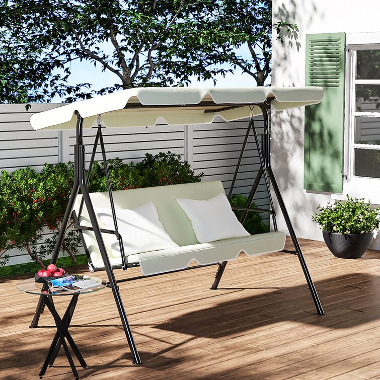 This three-person patio swing chair is the ultimate for relaxation in the comfort of your outdoor living area. It has a modern design that will be an ideal addition to any outdoor living space and a better way to socialize with friends. The adjustable and convertible canopy provides cool shade and protection from the sun’s harmful UV rays. Cushions ultimately eliminate the stress of spills with effortless cleaning. The swing chair is ideal for the poolsides, patios, decks, gardens, and more.