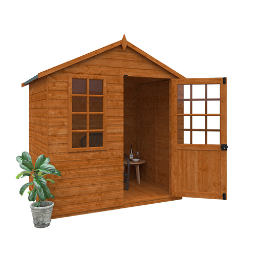 With superior grade finish shiplap cladding it is as strong as it is attractive and the ultra strong rounded four corner framework provides additional rigidity. Finished throughout with a touch of style the Summer Breeze features antique hinges and handles and comes as standard with superb Georgian style window and door. For added protection against the elements the building is coated with a TigerSkin water based treatment, and comes with heavy duty green mineral felt on the roof.