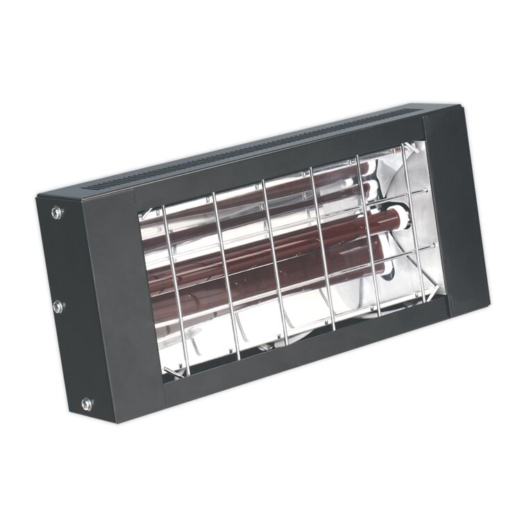 Electric heater with infrared quartz lamp. Suitable for wall or overhead mounting. Reaches maximum heat output within seconds of being turned on. Supplied with 1m power cable and mounting bracket. A totally dry heat with no condensation, no gas, no fumes and no smell. Ideal for workshops, warehouses and garages.